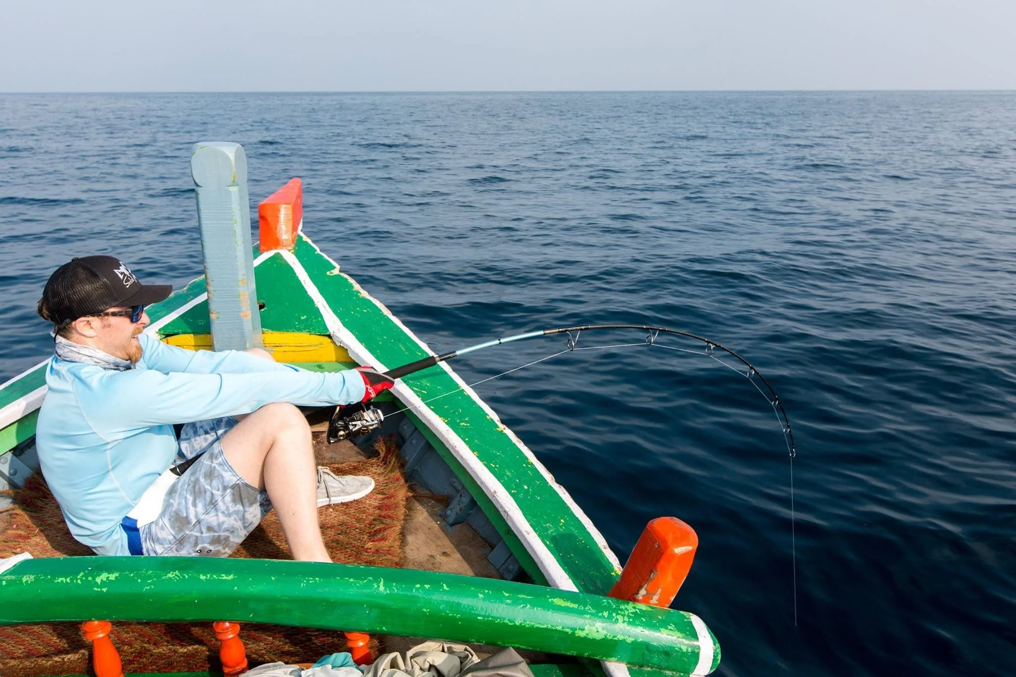 The rest of the week we set the focus on the northern part of the Lakshadweep Islands. The mothership travels by night and anchors in an adequate area from where we fished with our smaller fishing boats. The expectations where high, there was a lot of talking about big tunas and good GT fishing in virgin waters. The GT fishing was again quite slow on the third day but the tunas were very happy and available in big numbers. We could already see them from far away jumping in schools and hooked up to some really nice ones. In the end we could land them up to 40-50kg on topwater popping and stickbait fishing. Very visual and amazing takes on the surface followed by hard runs into the deep blue. Openwater-Popping at its finest.