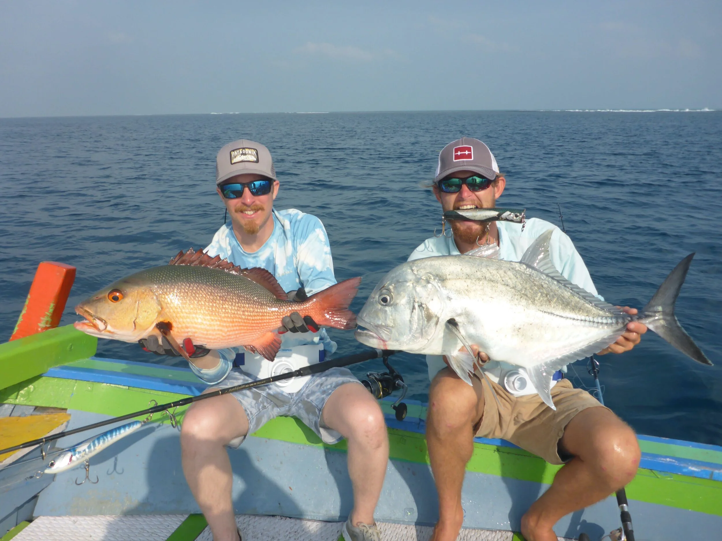 We didn´t really know what to expect from our upcoming trip to India. The reports from Solid Adventures in the weeks before were promising and showed that there was definitely potential for some good fishing, especially in terms of popping and jigging. The way itself is actually quite convenient, we started from Frankfurt with a short stop in Abu Dhabi and then a few hours to Cochin. There we stayed one night in a nice hotel near the airport where you have a good chance to get used to the climate and get to know your other fishing mates for the week. In our case it was Daniel and Tony from Sweden. The next day you take a flight in the morning to Agatti and from there the real trip begins. The first and second day we fished the area around some islands close to Agatti unfortunately without big success both on spin and fly. Only a couple of small to medium sized GTs and a couple of other species.