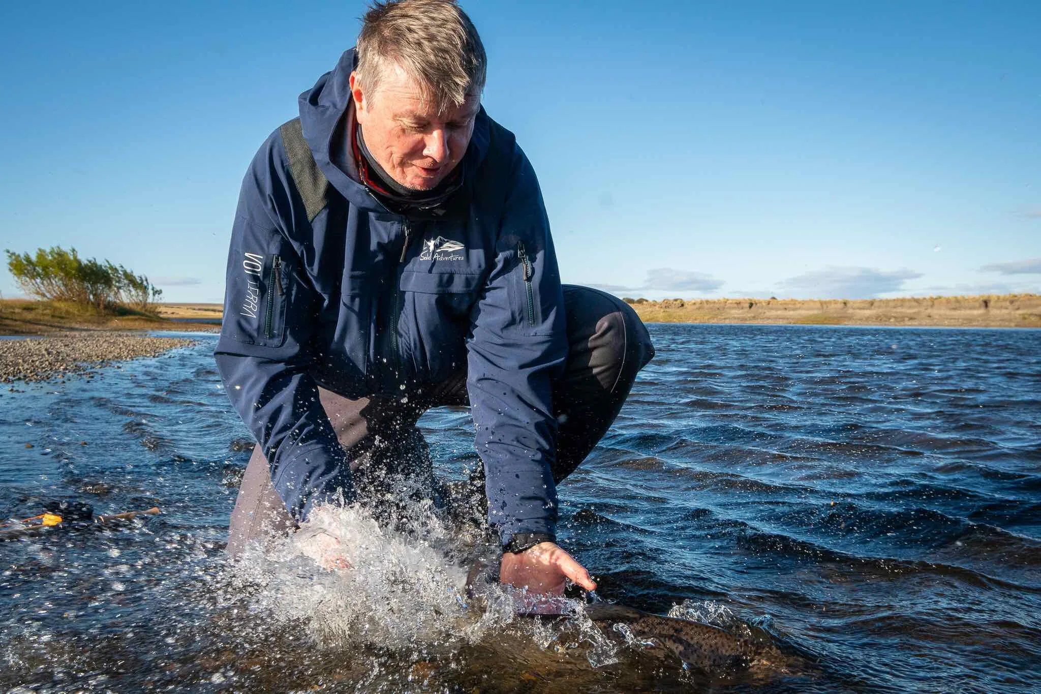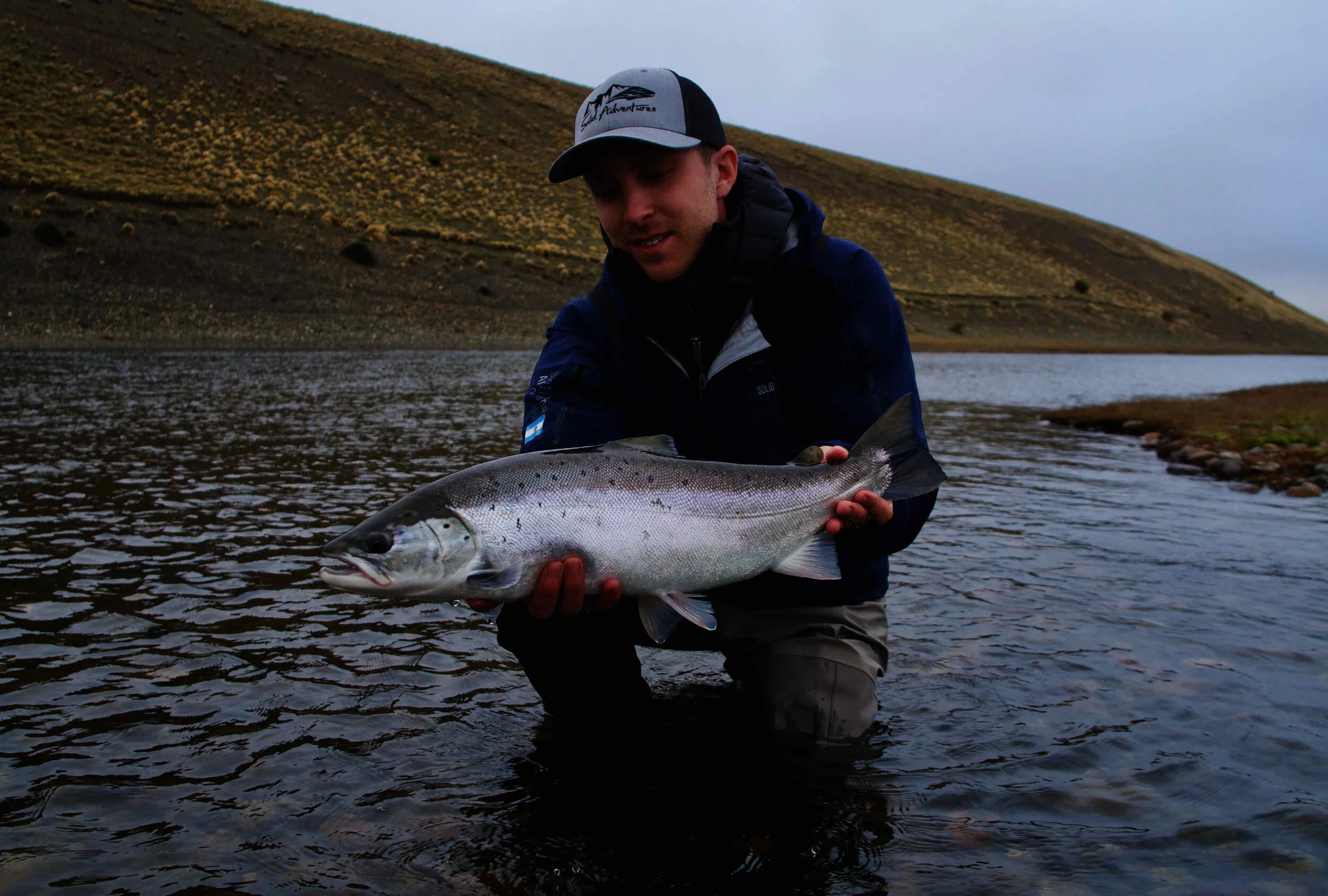 The fishing was good for all of us. Dirk had an amazing first trip to Las Buitreras and was one of the regular guests in the catch book with absolutely stunning catches in the double-digit area. With their experience on the Rio Gallegos Jörg and Toni landed a very good number of seatrouts, highlight was Toni´s fresh fish from limits, 14 lb of perfection. Our good friend Jörg from the tackle shop Angel Bär was making sure that nobody was short on leaders, flies and lines as well as being the DJ with his spotify-playlist on the way back to the lodge. Even Andreas, who was absolutely new to spey casting, did manage to land a few nice ones and was in the end able to cover the water very well. Big respect for him for his positive attitude during the week. Also Axel, Marco, Amanda, Janis and Li spent a good week on the water and I guess there were as well a few great experiences that were celebrated with a glas of Malbec in the evening.